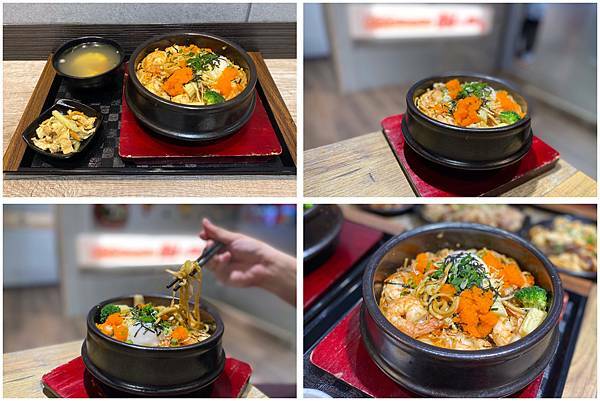 這道的石鍋料理熱騰騰裡頭有滿滿的魚卵跟蝦子