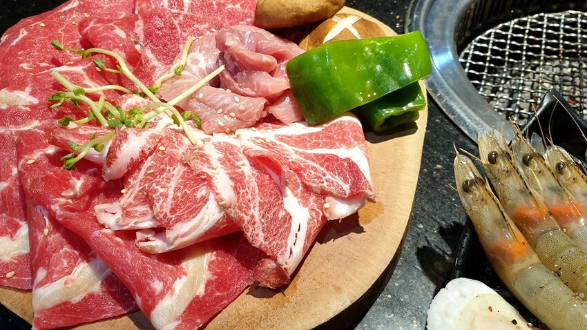 如果愛吃比較高級的肉的話,真的是頂級燒肉吃到飽點下去就對了,因為跟經典燒肉菜單的品項選擇比起來,多了10樣,包含嚴選頂級和牛、限定A5和牛排、金蔥牛舌、極黑牛厚切板腱、極黑牛小排、頂級伊比利豬、北海道大干貝、草蝦、鮑魚、鮮蠔。