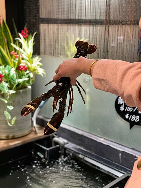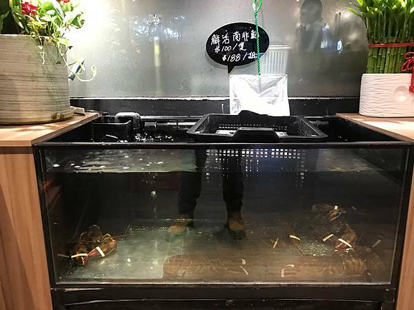 海鮮波士頓蝦及活鮑魚活蹦亂跳在水缸內