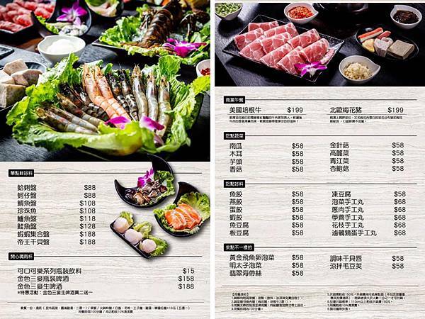 美國培根牛肉 單點鍋物288元 單點肉盤108元