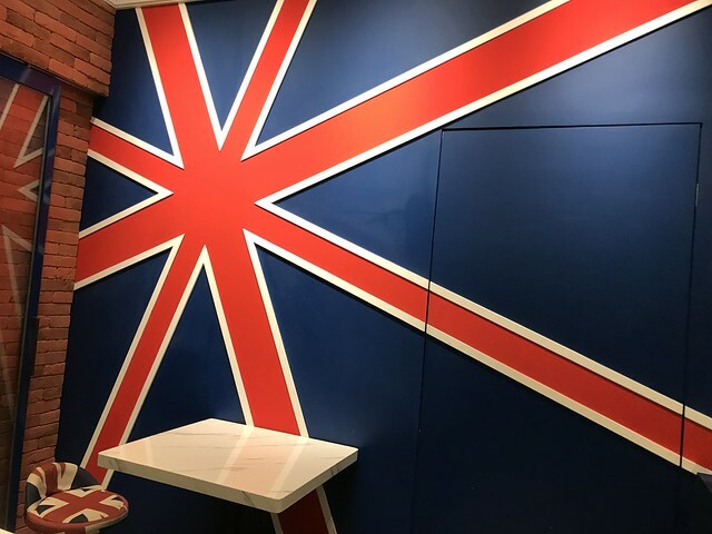 裝潢使用紅藍白三種英格蘭國旗的顏色