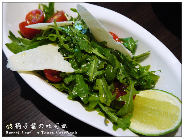 接著這道芝麻葉沙拉是葉子聽了吃過的珍珍推薦點的~還有看到帕馬森起司與檸檬。