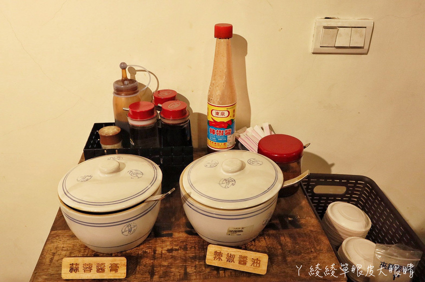 辣椒醬油、蒜蓉醬膏及各式各樣的沾醬都在這裡,竟然還有台中有名的東泉辣椒醬!不過個人覺得麵容餃好的調味算重的了,基本上不太需要額外沾醬。