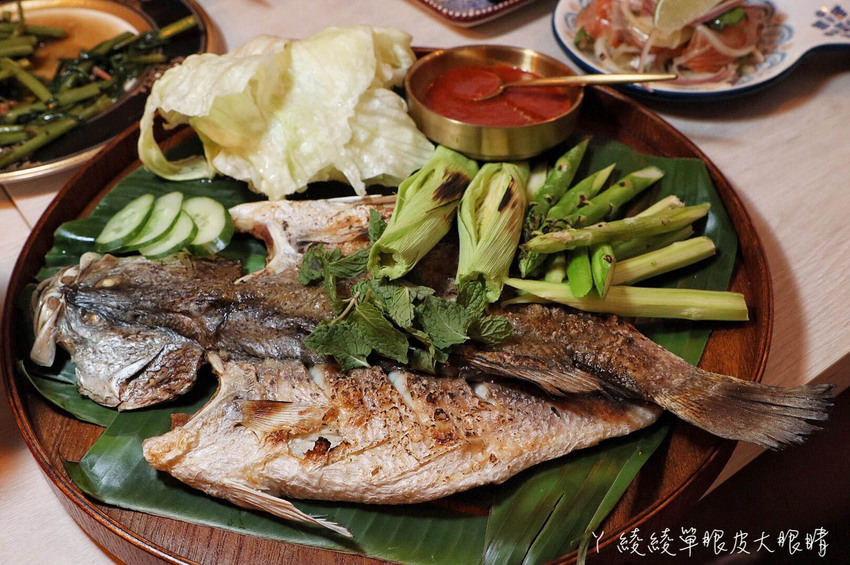 芭蕉葉鹽烤鱸魚佐辣蝦醬