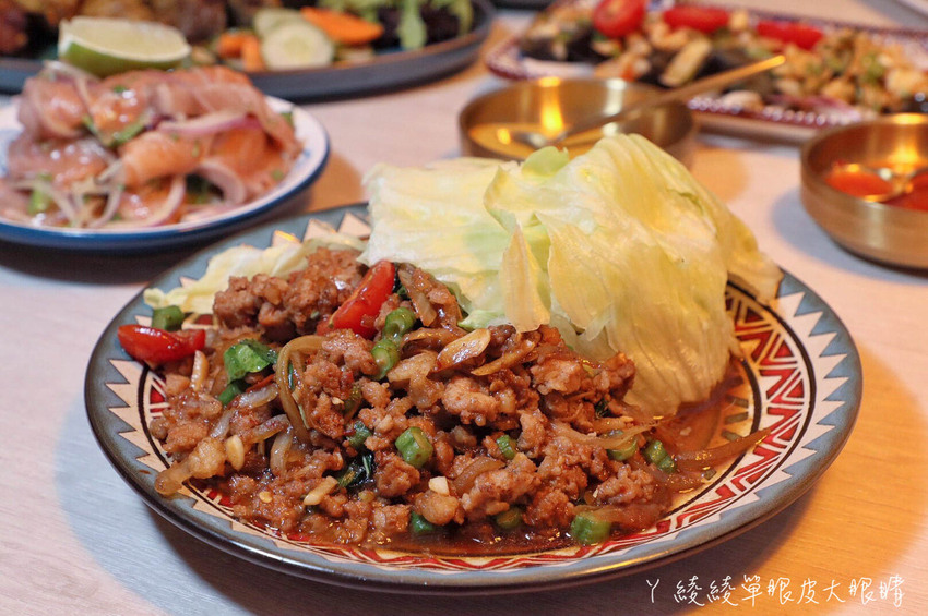 豬絞肉肥瘦比例剛剛好,可是這道幾乎沒有辣度,鹹度似乎也可以再加重一點唷!至於生菜就很新鮮爽脆,喜歡通通包在一起吃!