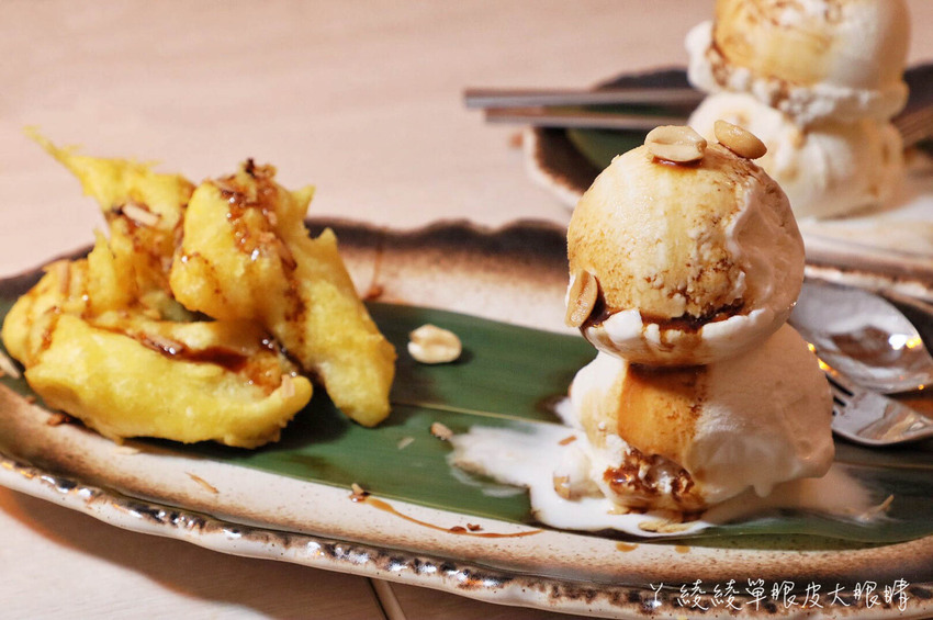光是那兩球香草冰淇淋就夠讓人興奮的了,據說這是客人們超推薦的人氣甜點!炸香蕉有微酥的麵衣,裡面是香甜Q嫩的香蕉果肉,上面還會淋上黑糖糖漿跟椰奶,並且撒一些花生粒,果然讓人一吃就喜歡。