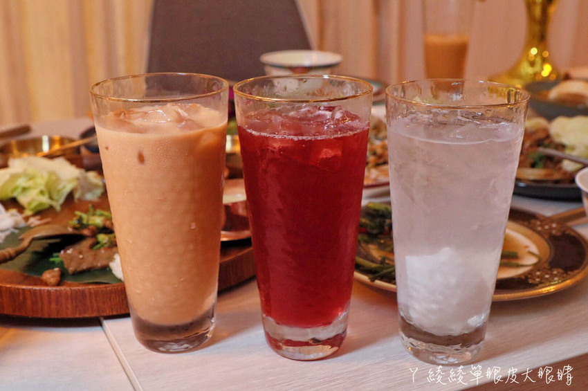 泰式奶茶口感香滑柔順郁,但我平常不太會喝這麼甜,建議點餐時可以告知店員調整甜度;莓果石榴寶石氣泡茶的基底茶是綠茶,主要是用蔓越莓跟紅石榴特調;真雅芒果汁是濃縮果汁,朋友覺得這杯口味中規中矩。