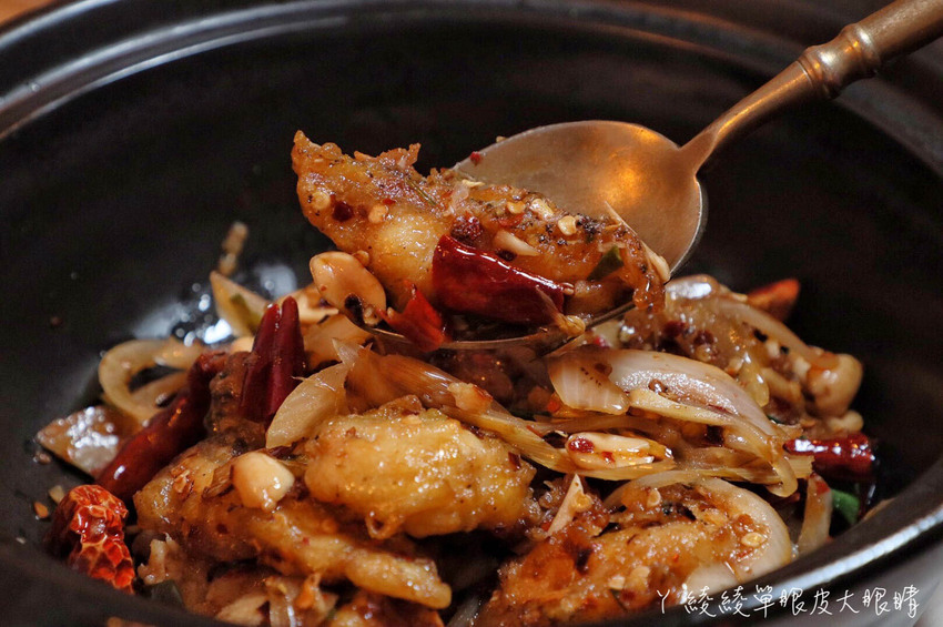 汰汰熱情酒場最近推出的新菜也很熱門,這在以前可是隱藏菜單呢!龍膽石斑的肉質很Q,僅有微微的辣度,似乎還帶有中藥香氣,外皮竟然還有微微的脆度,若能再提升辣度就更棒啦!