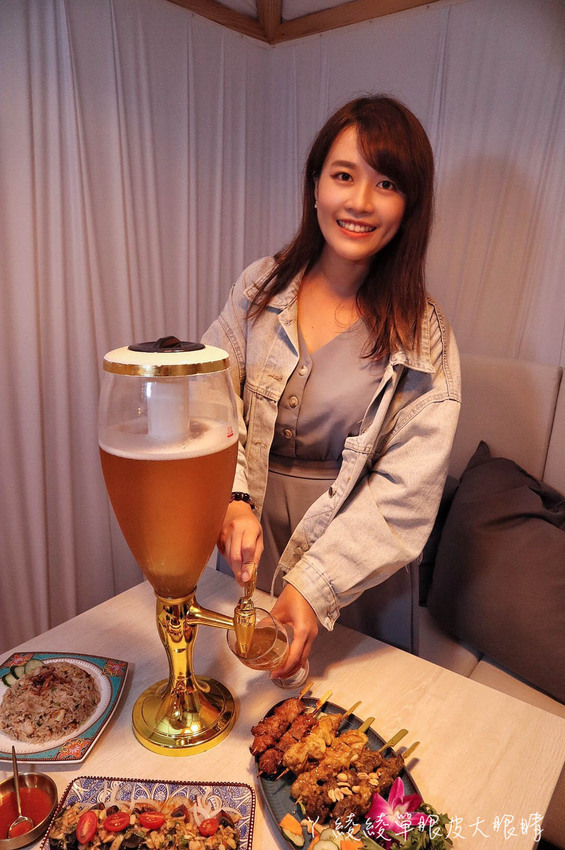 眾多的精釀啤酒、調酒、紅白香檳、威士忌跟清酒等等可以讓客人選,沒想到汰汰熱情酒場竟然還有三公升的酒柱!看起來也太壯觀了!(喝酒不開車,未滿十八歲請勿喝酒)