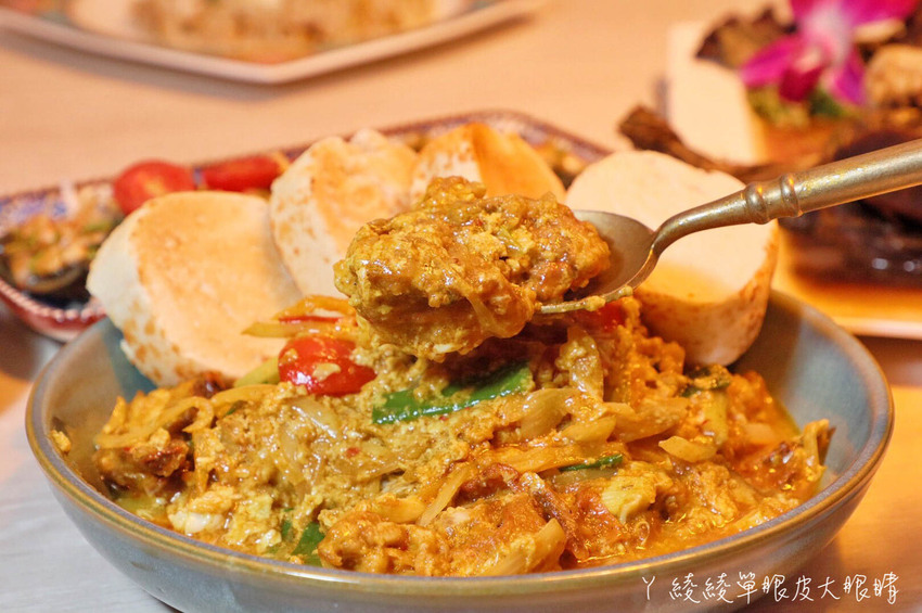 這道也是ㄚ綾綾推薦必點的料理,聽說也是招牌人氣餐點之一!咖哩醬不會太辣,但是濃郁到不行,而且一上桌就迎來香氣撲鼻的氣味!附送的四片麵包咬起來柔軟,沾著咖哩醬一起吃超開胃~