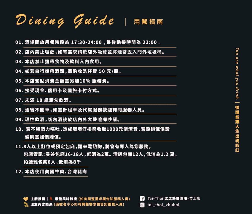汰汰熱情酒場營業時間到凌晨十二點,想吃宵夜或小酌聚餐的朋友,快衝來竹北吃這間的泰式料理吧~(未滿十八歲請勿喝酒,喝酒不開車)