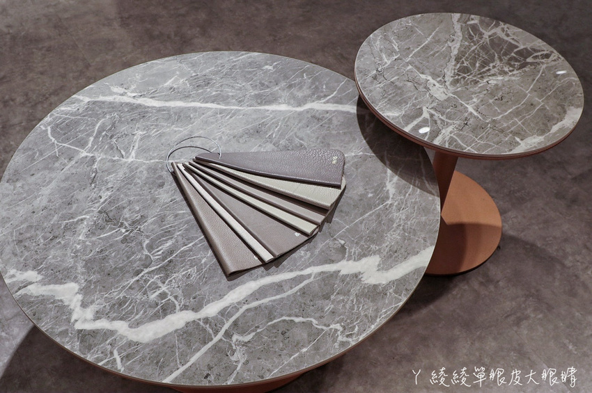 這款沙發以俐落大方的線條加上橘白配色,看起來非常亮眼!傾斜高背的設計,坐起來更加舒適~店員說這是使用義大利進口高級牛皮,尺寸跟布料皆可客製化,好想帶一組回家啊!
