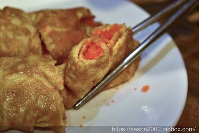 金鶴魚卵蛋,看起來像蛋捲般似,吃到鮮魚卵的比比啵啵口感,再加上蛋香,吃起來不會油膩,新鮮現做的蛋捲離,飽滿的金鶴魚卵,每一口藏匿著驚喜。