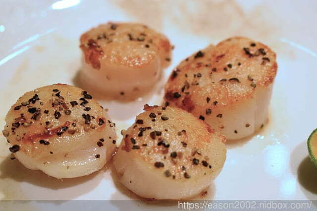 最後一道,北海道干貝,表面香煎的剛剛好,直接入口,不要分開慢慢咬食,更能吃到干貝的香氣,單獨吃或是輕沾胡椒鹽,可以吃出不一樣的風味,金鶴屋的料理,真的都很棒!