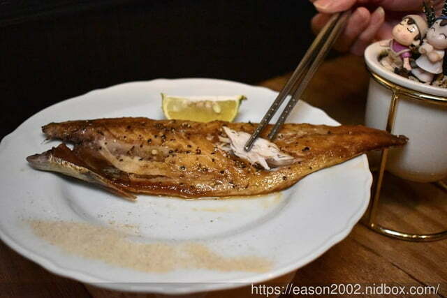 再接著是香煎鯖魚,輕淋上檸檬原汁再沾上胡椒鹽,吃起來魚肉鮮嫩,表面煎的洽洽,脆中帶著鮮魚香,還有胡椒做點綴,第二道菜就讓人滿意。