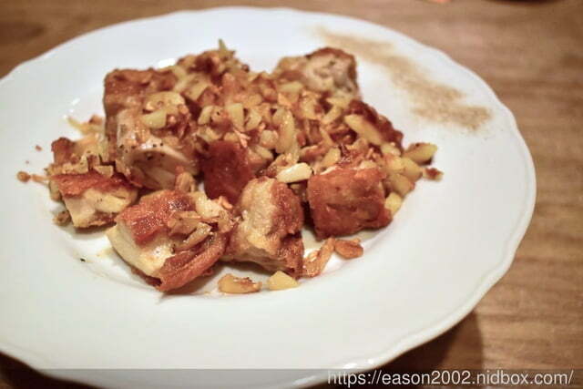 香蒜雞排,將蒜頭切成小塊,香煎後,帶著零食可樂果的風味,再加上雞排的酥脆帶軟,雞肉吃起來軟嫩搭配香蒜,Lulu本身還蠻喜歡的乾煎烹飪方式,Lulu一個人像大食怪一樣,把他全部吃光光,超滿足。