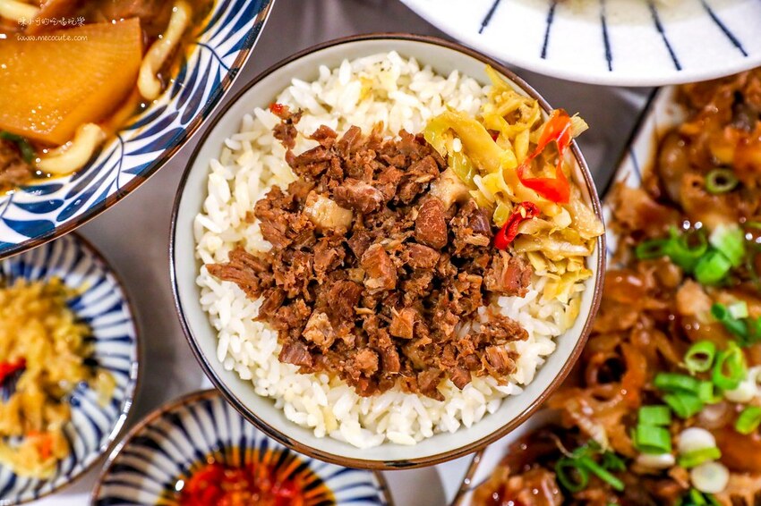 口感飽滿的白飯應該有特別挑過,白飯煮的好吃對我來說很重要,上面幾乎鋪滿肉燥和酸菜,看起來不油的肉燥和以往吃得不太一樣,以瘦肉較多,即使是肉燥也能咬到紮實,肉燥香氣夠,但多了一股“草味”,平常本身偏愛肥潤的口感會覺得少了牛油風味,但這碗被宜蘭人扒光,真的是每個人口味不同呢!