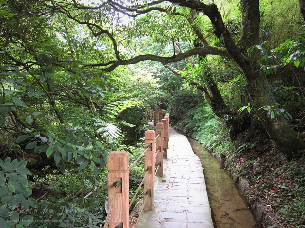 ▼沿著木製的欄杆和步道走的這一條就是水車寮步道了