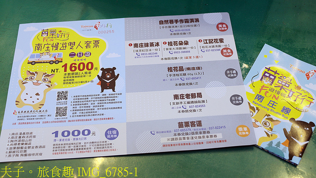 1. 乘車兌換券:可兌換苗栗南庄好行乘車券 (1張)