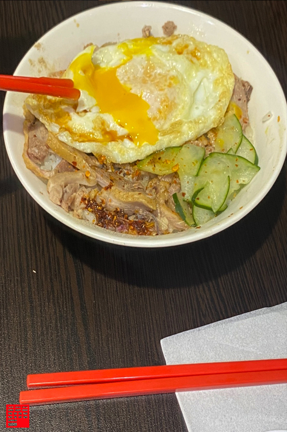 還有另一種經典吃法,是把半熟荷包蛋放到鴨香飯上,戳破蛋黃,讓金黃色蛋液流下,那個滋味,真的是說不出的爽快!