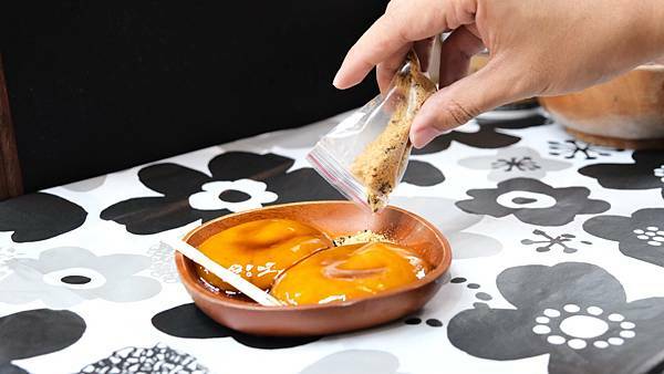 煮透後放入黑黑亮亮的黑糖湯內浸泡