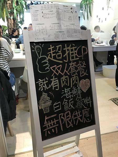 店門口推薦的雙人套餐有肉有海鮮的套餐