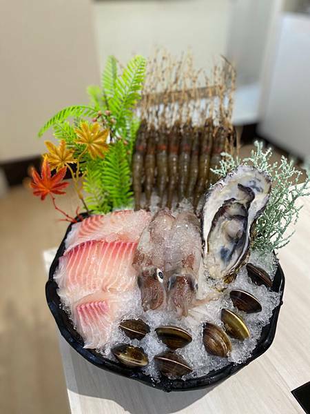 培根牛、梅花豬、精彩海鮮分享盤、兩份菜盤、豆腐皮等