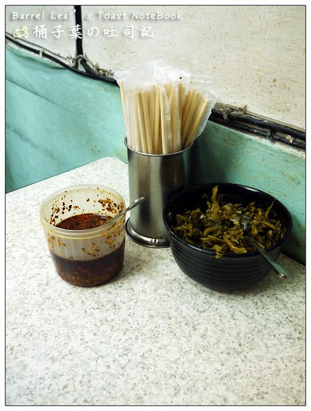 桌上都放有這些~筷子大概因為求快所以還是免洗的,一旁有牛肉麵一定要的酸菜,