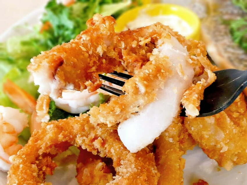 香酥Q彈的魷魚圈. 咬開薄薄的粉. 裡面是厚實的魷魚肉
