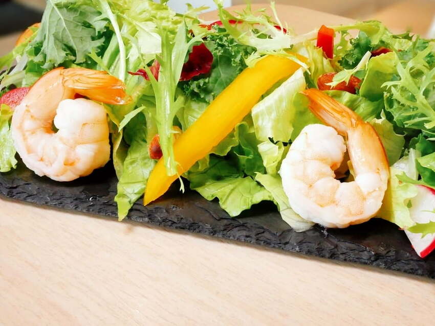 再搭配清爽的鮮蝦沙拉.一整個可以吃的好飽足~