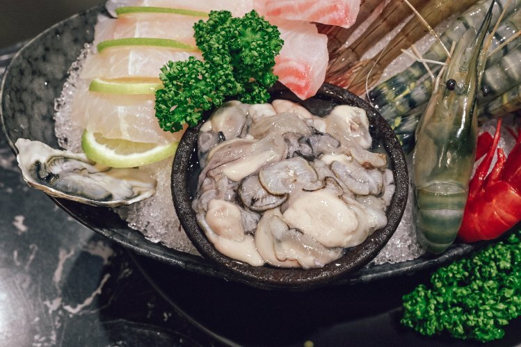 一定要推一下生食等級干貝,刷到半熟與檸檬片一起入口,滋味相當清爽。