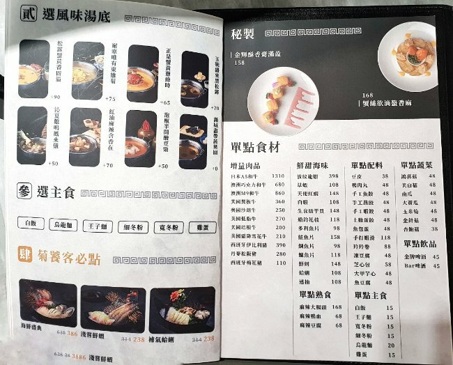 這是我看過最美最精緻的菜單了,彷彿像是一秒轉換至中國宮殿,要帶我們打開一扇穿越古今的大門,吃著以菊花為主的精緻鍋物。