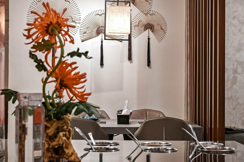 滿室以古風為主題又以橘花做為點綴,吊掛的紙燈籠充滿著滿滿中國元素,舒心典雅又很清新,相當有格調又充滿質感,此時如果出現一位中國古代美女在此用餐,我也不意外,真的太有氛圍了啦!