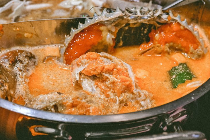 喝起來好鮮香,一開始覺得是小小辣但後勁有強,很像南洋叻沙鍋的濃醇香,越喝越順口,我的螃蟹沙母還沒入鍋就超級無敵鮮美,湯頭真有用心沒在隨便,這款我超愛很有特色!
