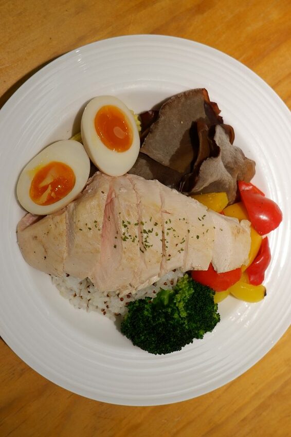 熱騰騰的黎麥飯搭著軟嫩的肥嫩雞胸