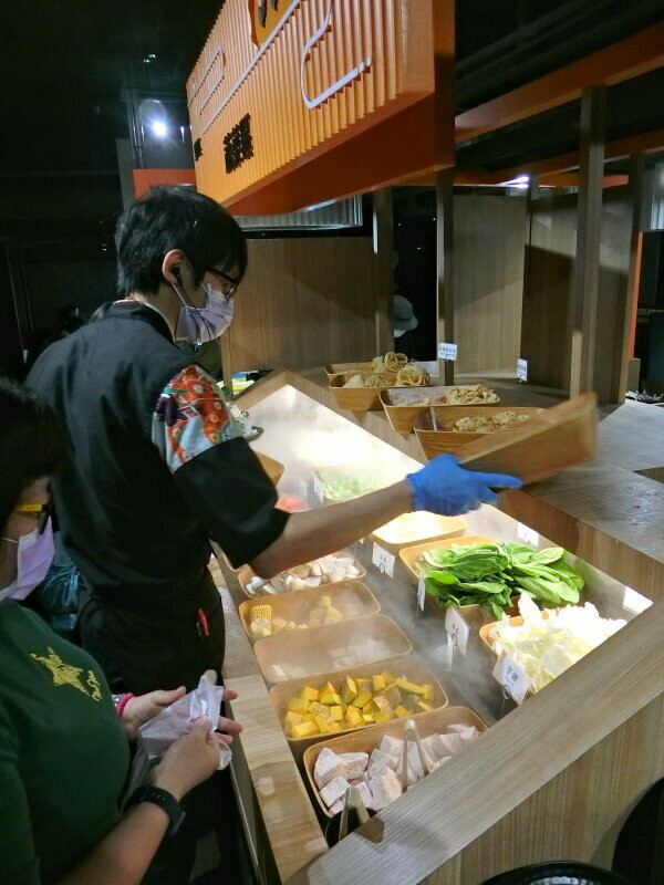 蔬菜、醬料、飲料、甜品都放在自助吧檯
