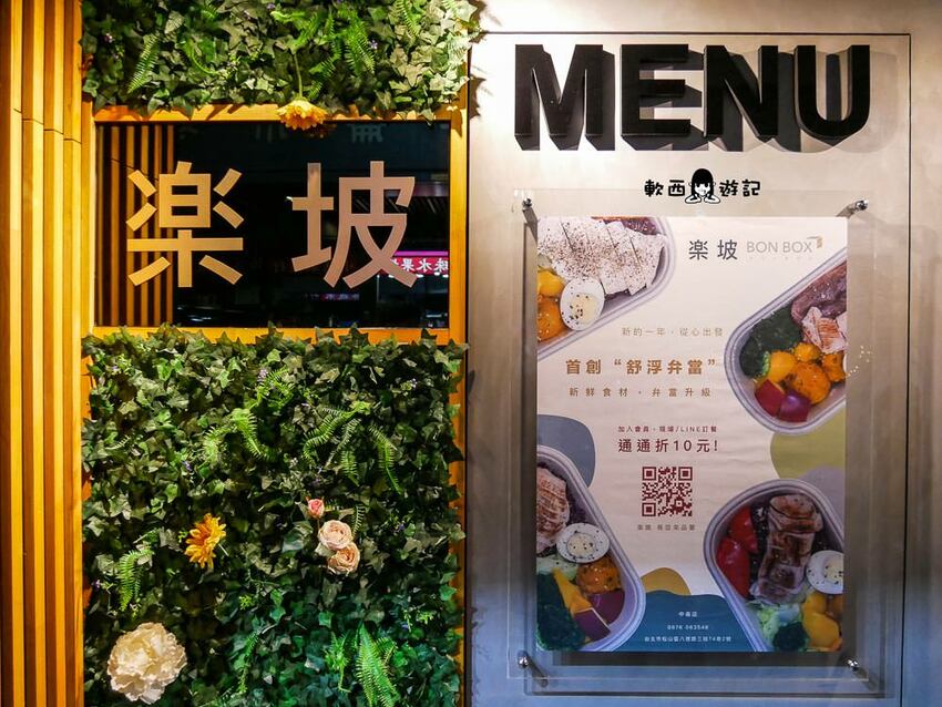 位於小巨蛋附近的楽坡,小巧外觀有著木製點餐櫃檯,旁邊還有面綠意盎然花牆,楽坡兩字躍然於眼前,吃便當是件時尚潮流的事情。