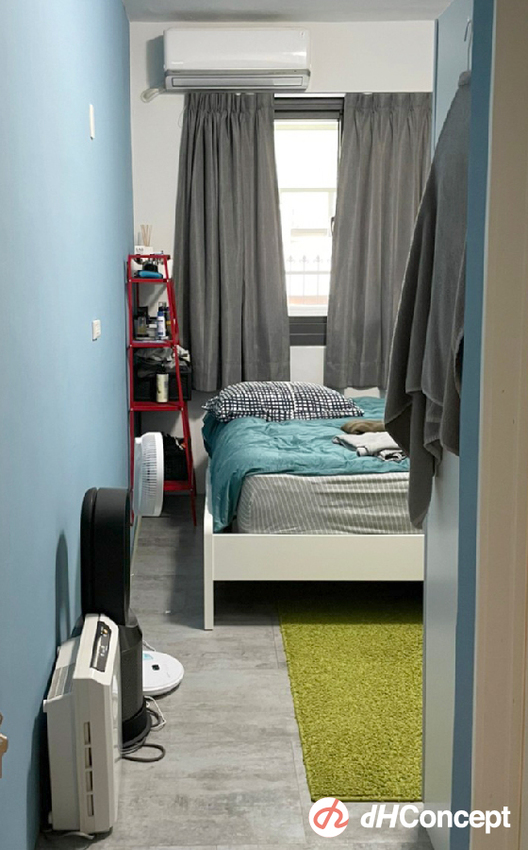 聊到室內裝修,很多人會選擇使用保守的淺色系作為牆壁顏色,賴瑞卻大面積的漆上較深的顏色,「我其實沒有想太多,就選擇喜歡的顏色」賴瑞爽朗地說,因為想比較好入睡所以選擇了較深的藍色做為臥房的牆壁顏色。