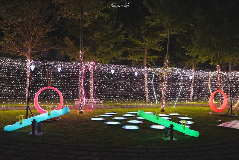還有夜光蹺蹺板、互動式感應琴鍵的聖誕樂園,趕快來玩喔
