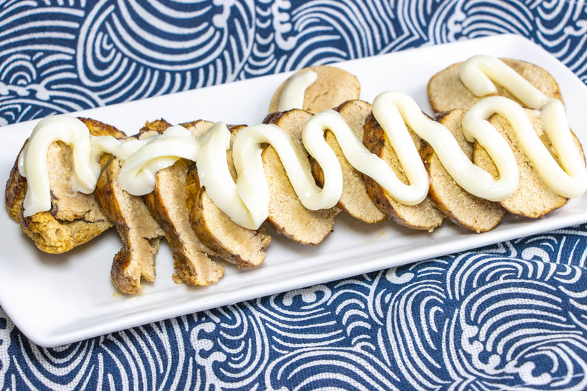 煎好後放在一旁略為等候,讓表層涼些,就能直接切片並擠上美乃滋一同搭配,就是外頭熱炒店裡的魚卵沙拉啦。
