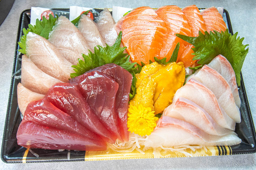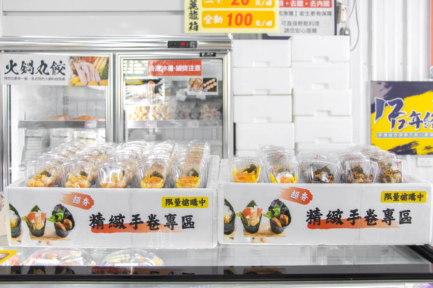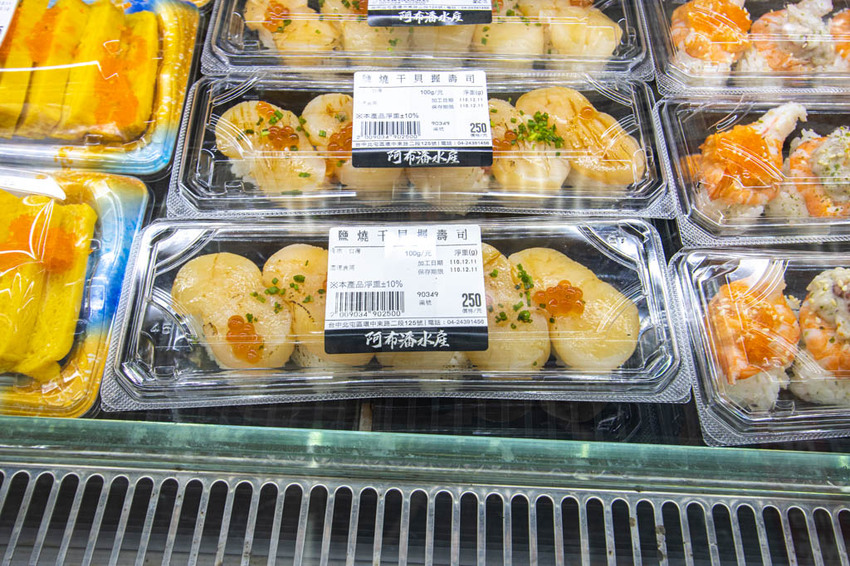 生魚片即來自店內的每日新鮮漁獲,品項多多,此區也是店裡的人氣區,不少人挑完要購買的產品後,便會直接來這兒帶上幾盒生魚片與壽司才算購物完成,開心的回家去。