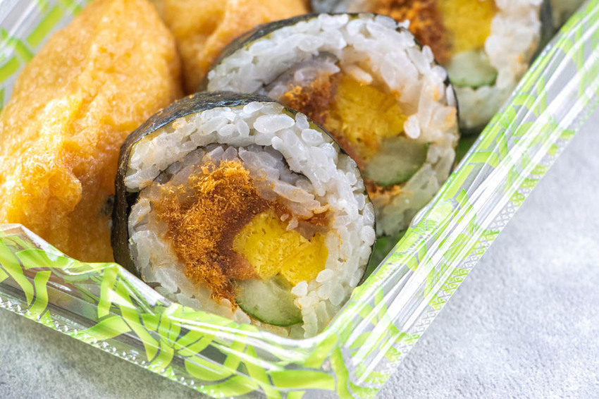 口感酸中帶甜的稻禾壽司,吃起來顯得清爽不膩口,而海苔壽司裡的肉鬆頗為出彩,維持著我們印象中好吃的海苔壽司所呈現的風味。