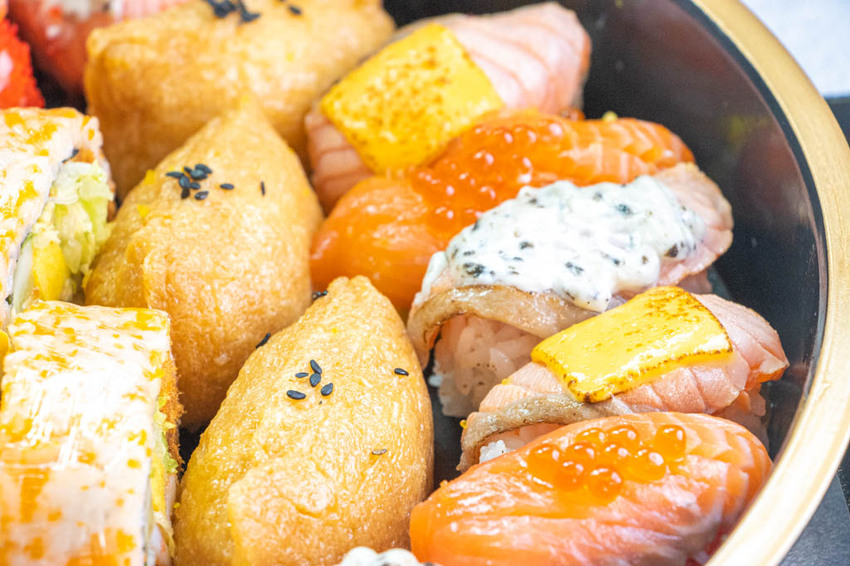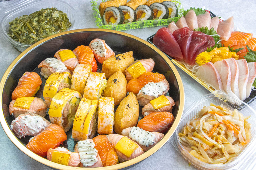 櫃子裡的各種壽司雖說也是隨時都會補貨,不過有些熱門項目當日售完就要等候明日才有,或是透過事先預定才能買到,像「滿載而鮭」壽司大拼盤,是我們前一天先預訂到店裡拿。裡頭的組合超豐富澎湃,家庭聚餐這盤拿出來超大器又方便!線上看→ 阿布潘水產美食區 。