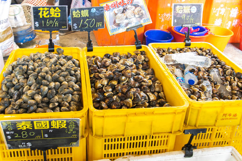 父子倆則是被入口處的『蛤』大軍給吸引了,都還沒入場,就先買了一大袋的蛤蠣(笑)。