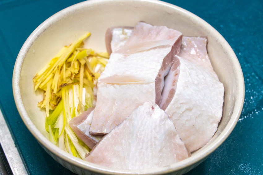 除了香煎外,將虱目魚直接煮成湯品或粥也是極佳的選擇,解凍的虱目魚我們不管是想要切片或直接下鍋都可以,切上薑絲與蔥白備用,一樣可以先用米酒將表面略為醃漬5分鐘,或是下鍋後在湯裡加上少許米酒也可以 (鹽最後再加哦)。