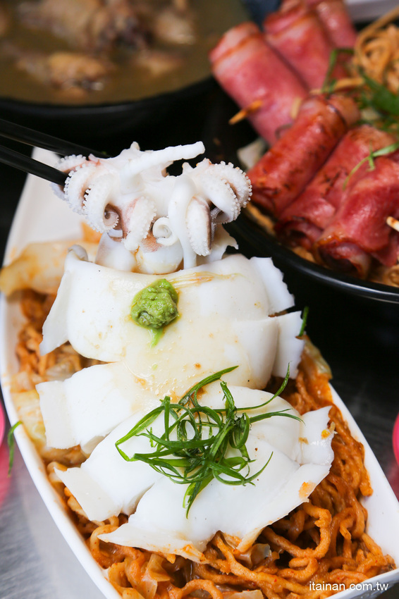 雖然已經是台南美食界的厲害角色,但「金三益健康茶飲」總是推陳出新,不定時推出新品,讓客人可以有新意。尤其是浮誇系列你想的到的海鮮,舉凡:小卷、花枝、鳳螺、帆立貝、蚵仔、火燒蝦、花枝等等,你都能吃的到。蓋到整晚看不到麵的海鮮意麵,不管是湯的或是乾炒,價格大約都落在120~200元左右,經濟實惠又吸睛,難怪會天天大排長龍。