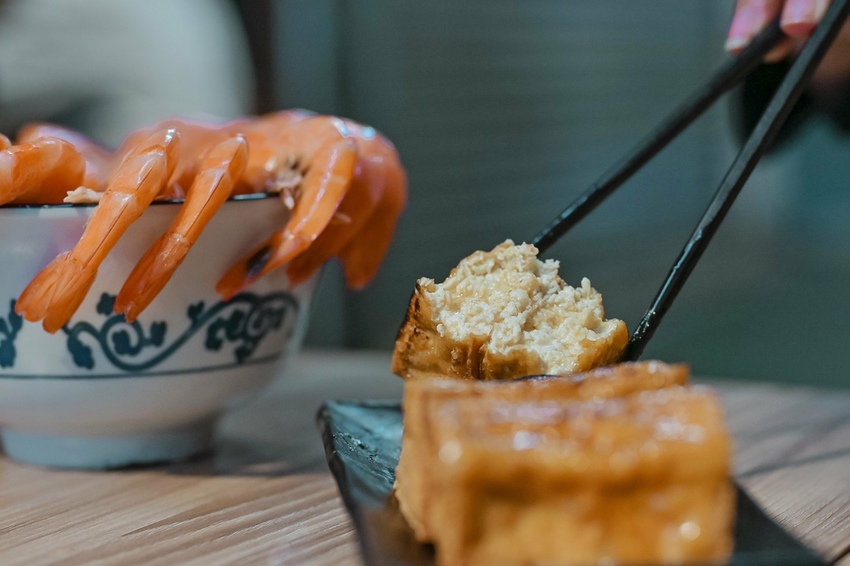 15隻鮮蝦剝起來也是個體力活,我自已撥到眼神死,要考驗男友的耐心度請必點這一道,撥了一陣子後終於可以大快朵頤一番,享受豐收的成果(淚)。不愧是海中蝦蝦,每一隻超彈牙又鮮美,每咬一口就是來自大海強力的浪花衝擊,配著麵線吃超級大滿足,感動想哭,一個人吃15隻太過癮!