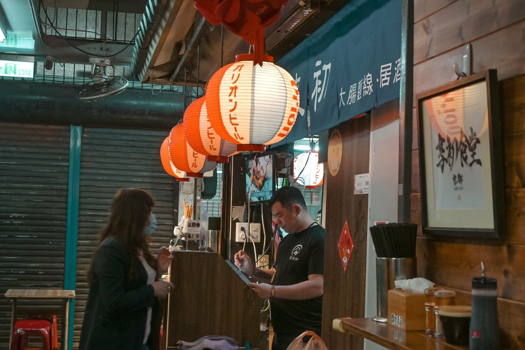 享來初位於位於熱鬧的新竹東門市場內,鄰近新竹城隍廟,店內呈現日式居酒屋的風格,垂掛著許多日式燈籠,有點昏昏暗暗,即使白天中午來也很有晚上來一杯的氛圍。
