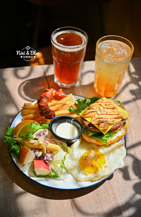 套餐中還有搭配生菜沙拉、薯條、德國香腸、太陽蛋,相當多樣化且豐富
