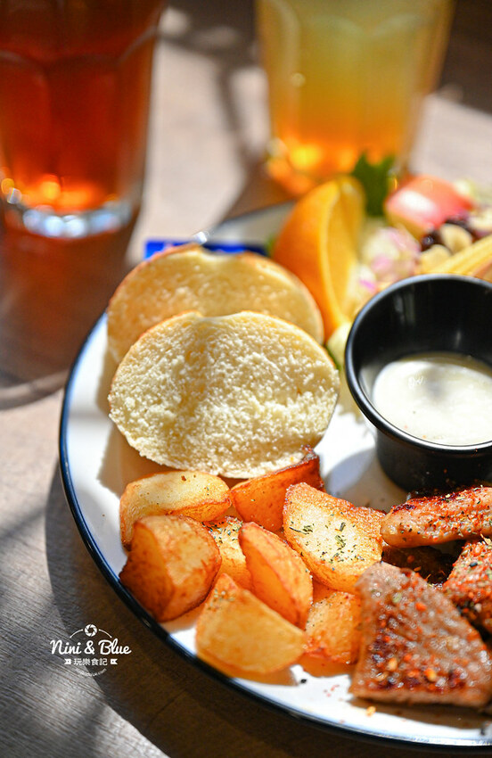 事先有先醃過豬肉香煎到有點恰恰,帶點微微的鹹甜感再撒上七味粉和義式香草,口感頗嫩、出乎意外的好吃ㄟ~